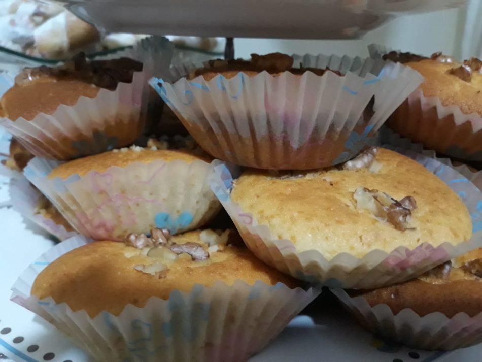 - Una bulanan cevizlerimizi kağıt kek kalıbındaki hamurun üzerine koyabiliriz.