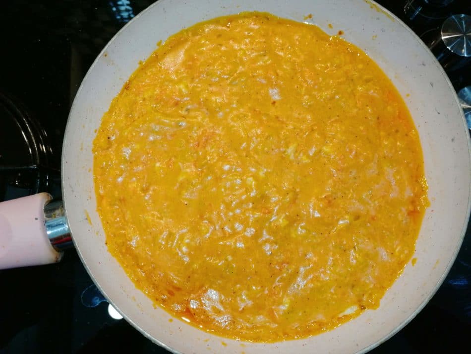 - Yumurtaların sarılarını da tavamıza ekleyip karıştıralım.